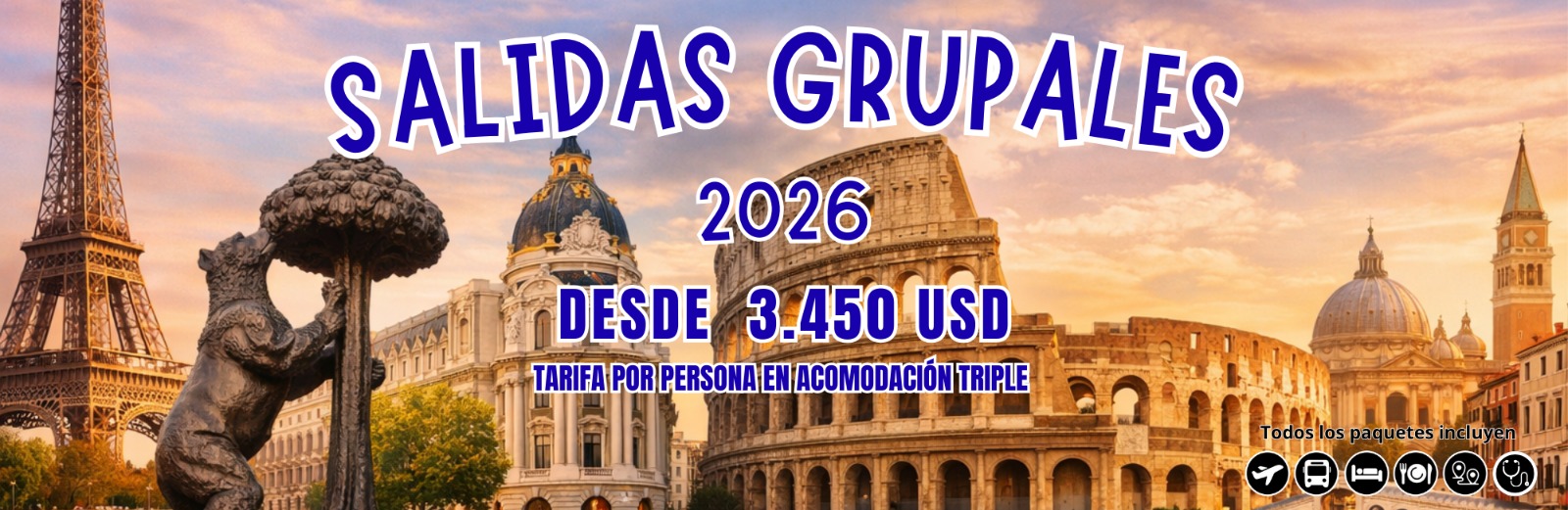 Viajes y circuitos internacionales con salidas grupales y pagos en Colombia.